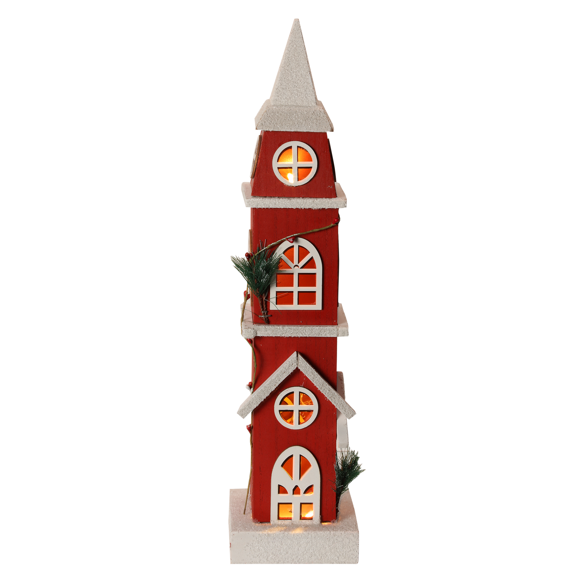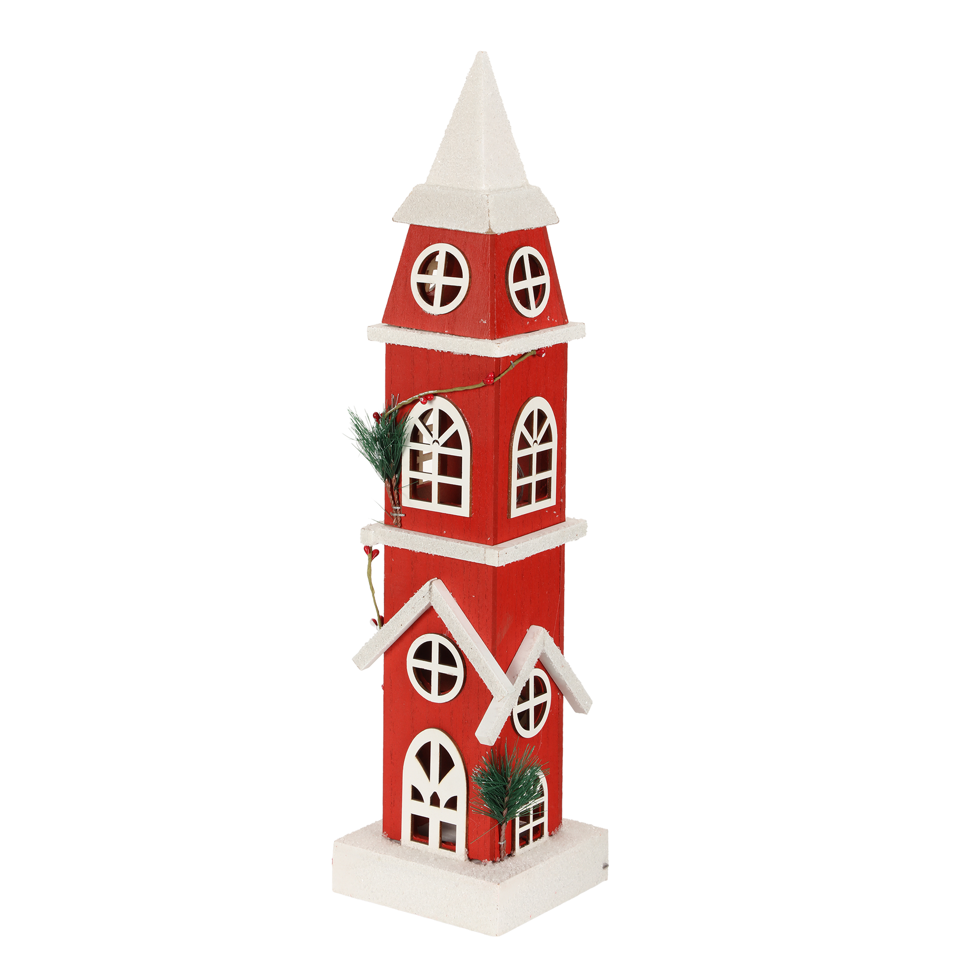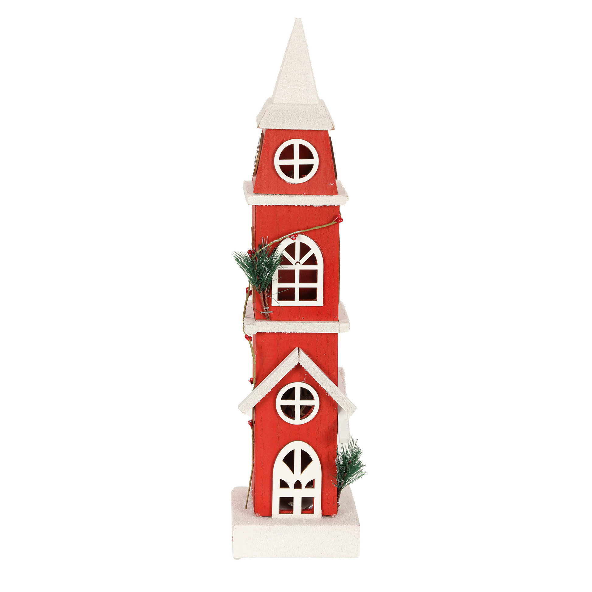 Clocher de Noël Lumineux Rouge Traditionnel en bois 49 cm